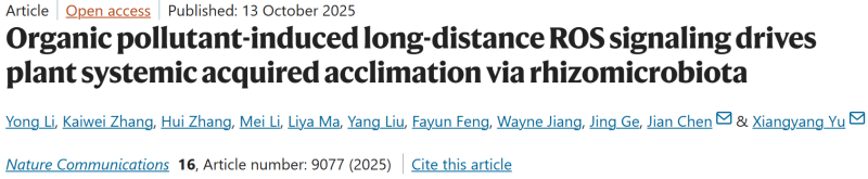 近日,质量安全所农产品产地有机污染减控创新团队在Nature Communications上在线发表了题为“Organi...