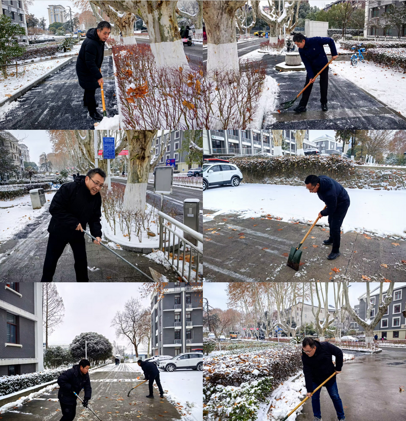 清雪现场,大家分工协作、干劲十足。有的挥舞铁锹铲破冰层,有的紧握扫帚清扫积雪,有的合力将雪堆推至路边,尽管寒风刺骨、双手冻得通红,额前的头发却因忙碌冒起热气,天寒人暖。大家齐心协力、默契配合,不放过一处积雪、不留下一处冰面,经过近一个小时的奋战,经作所办公楼周边及主干道的积雪被彻底清理干净,原本湿滑的道路恢复整洁畅通,为行人出行筑牢了安全防线。