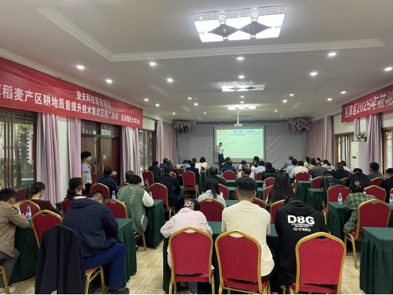 在技术培训环节,王龙俊和张莹分别围绕“小麦高产高效特性与实用栽培技术”和“稻麦轮作农田土壤质量提升及安全利用技术”进行了系统授课,为参会农技人员与种植大户提供了全面、实用的技术指导。土壤污染修复创新团队成员、高淳区各乡镇农技人员、农业种植主体及种植户代表等70余人参加培训。会后,部分参会代表还赴项目核心示范基地开展了现场观摩与交流。