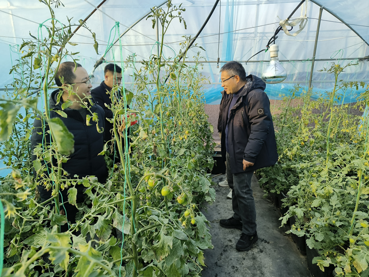 专家团队一行走进江苏楠杭农业科技有限公司番茄大棚,得益于前期极端低温天气时,基地严格按照工作站指导意见,及时启用增温块、补光灯等设施,除通风口少量植株出现轻微冻害外,大部分植株均安全越冬。专家团队提醒管理人员,需持续关注天气变化,精准落实后续应对措施,保障番茄正常转色、按时采收上市。在盆栽叶菜生产大棚,专家还向来访的铜山房村工作站人员,全面介绍了盆栽叶菜的生产流程、技术标准、市场前景及运营模式,实现技术经验共享。