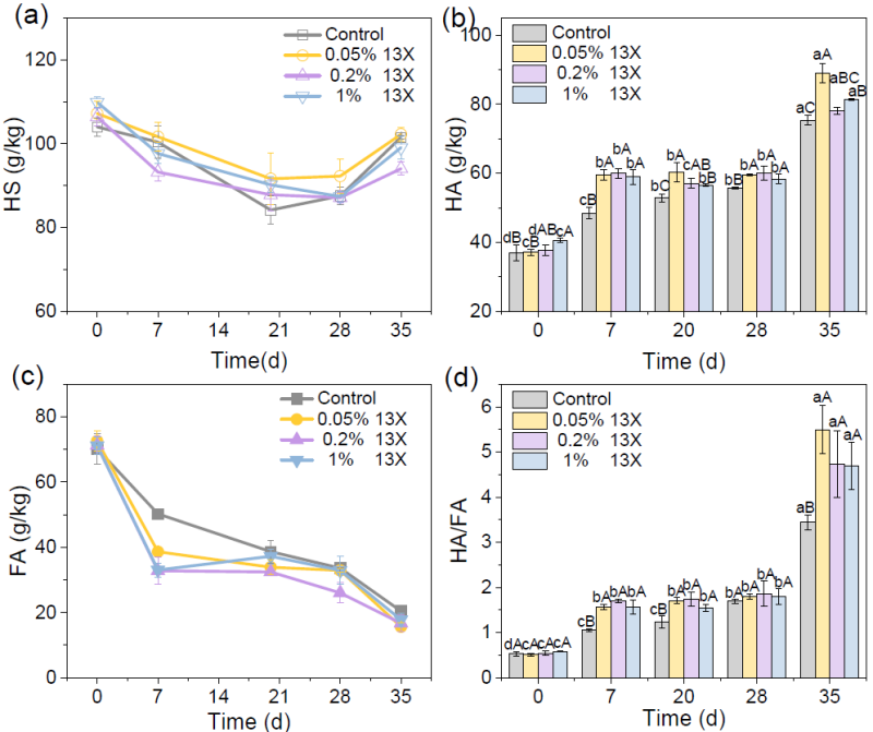 图2 分子筛13X对堆肥腐殖化的强化效应