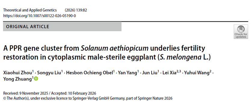 茄子是世界重要的蔬菜作物之一,几乎所有的商业品种都是杂交种。然而,目前杂交种子生产主要依赖人工去雄授粉,不仅劳动强度大,成本高,还难以保证种子纯度。茄子CMS主要通过栽培茄与野生茄种间杂交创制,但育性恢复的遗传基础尚未明确。