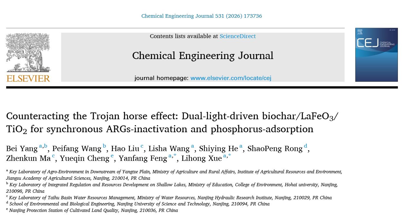 近日,资环所农业面源污染治理创新团队在国际知名期刊《Chemical Engineering Journal》(JCR一...