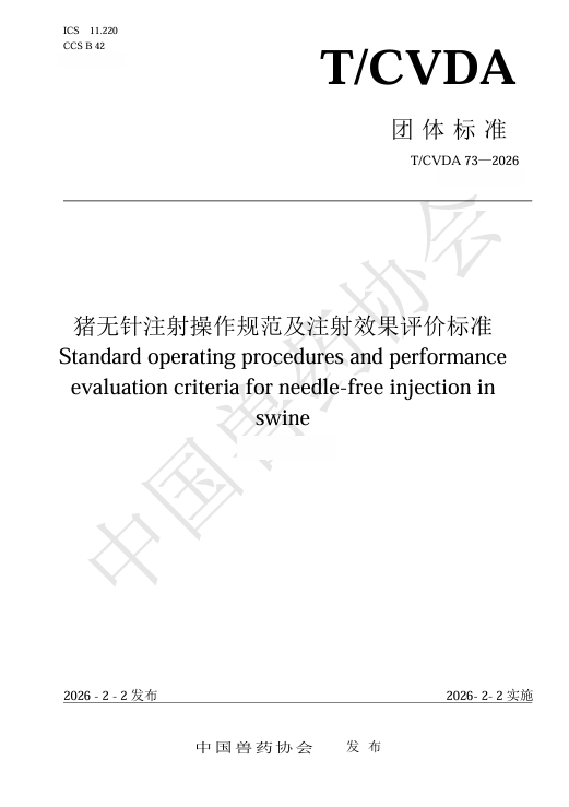 2026年2月2日,由免疫所动物疫苗制剂工程创新团队牵头编制的中国兽药协会团体标准《猪无针注射操作规范及注射效果评价标准...
