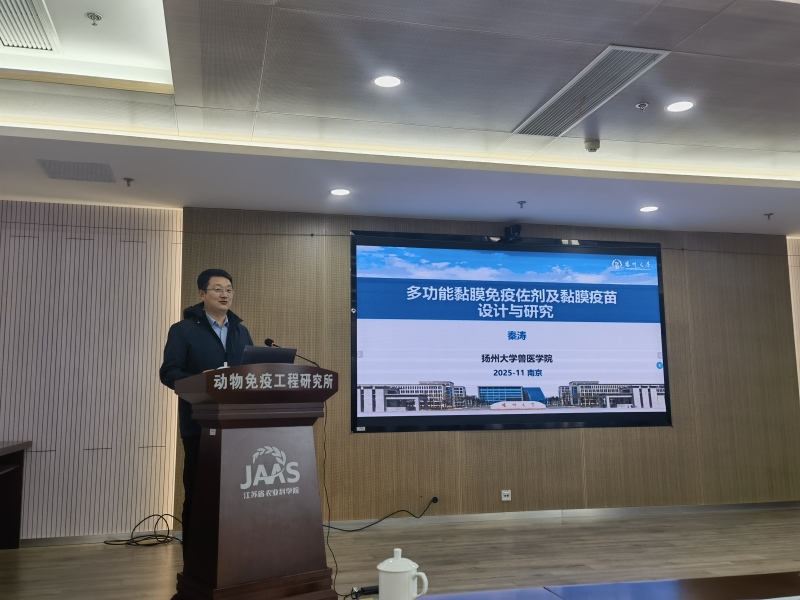 11月18日,免疫所特邀扬州大学兽医学院秦涛教授来所进行学术交流。报告会由免疫所所长赵永前主持,免疫所及兽医所相关科研人员、研究生参加会议。