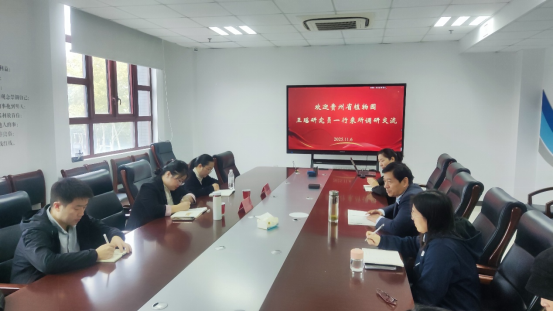 11月6日,贵州省植物园副主任王瑶一行来休闲所考察交流。休闲所所长、花卉创新团队负责人邓衍明主持接待,花卉创新团队相关科研人员参加交流。