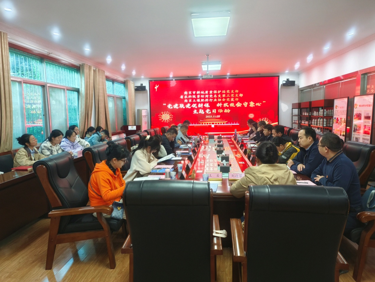 在党建工作交流环节,刘胜环介绍了市耕保站党支部基本情况、党建工作经验做法等。聂亚锋对南京市耕保站等单位长期支持我所科技成果推广与落地表示感谢,重点介绍了全所情况和党建工作的创新举措与成效。梁晓辉介绍了南京土壤肥料行业协会党支部相关工作开展情况。三方支部表示,要以本次共建活动为契机,强化党建工作经验交流,充分发挥三方支部战斗堡垒作用,以党建为引领促进业务紧密合作,共同推动耕地质量保护事业高质量发展。