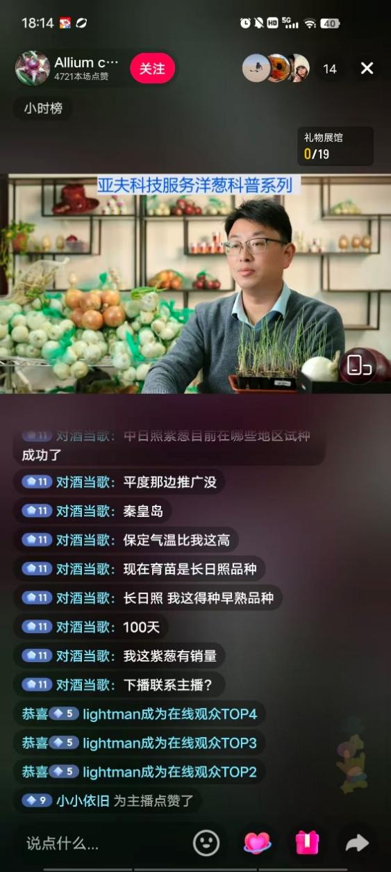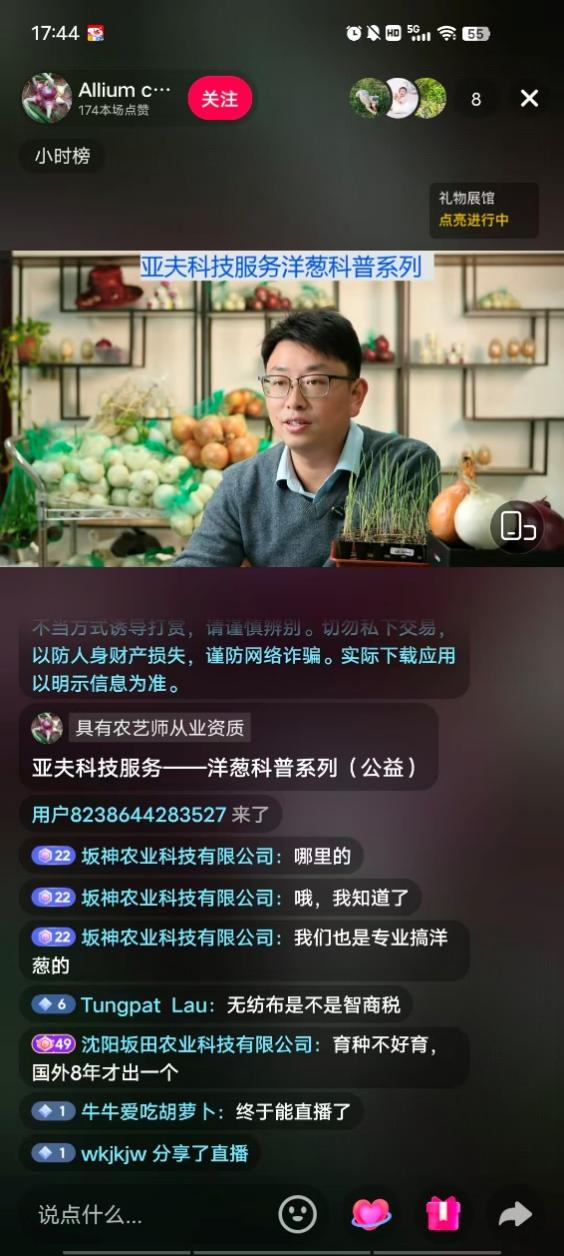 本次直播由蔬菜室副主任惠林冲担任主讲,团队成员郑旭、李瑞姿、陈微、何林玉等协同保障。直播内容紧密结合洋葱苗小,移栽后二膜、无纺布和小拱棚覆盖等问题进行了详细讲解与分析,提供了科学、实用的方案,有效实现了科技服务从线下到线上、从科研院所到生产一线的精准直达。