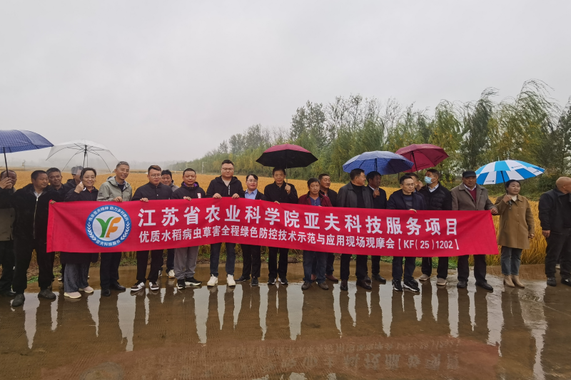 11月08日,为进一步宣传践行亚夫精神,推广示范植保所水稻病虫草害全程绿色防控技术,植保所亚夫科技服务项目“优质水稻病虫草害全程绿色防控技术示范与应用(KF(25)1202)”项目组联合涟水县农业农村局,农技综合服务中心和涟水县南集镇人民政府在南集镇组织召开技术培训和现场观摩会。植保所副所长、项目负责人樊磊研究员、扬州大学植保学院陈夕军教授和项目团队核心成员、涟水县农业农村局、种植大户、专业合作社代表等共50余人参加。