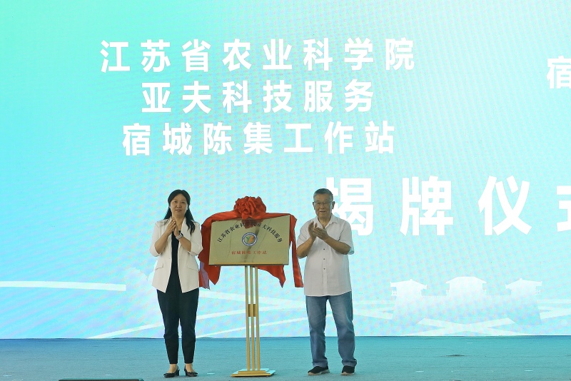 为进一步加强亚夫科技服务体系高质量建设,为我省乡村振兴提供科技支撑服务,接续传承好“亚夫”精神,9月16日,由我院果树研究所、宿迁农科所与宿城区农业农村局、宿城区陈集镇人民政府合作共建的江苏省农业科学院亚夫科技服务“宿迁陈集工作站”在宿迁市陈集镇揭牌成立。全国脱贫攻坚楷模、时代楷模赵亚夫先生,我院副院长孙洪武,院成果转化处处长顾军,宿城区区委副书记史巧红,宿迁所党委书记、所长于成功,果树所副所长王西成、葡萄创新团队首席吴伟民等参加活动。