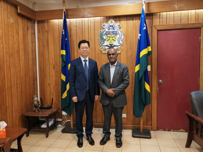 11月6日上午,所罗门群岛总理杰里迈亚·马内莱在位于首都霍尼亚拉的总理府会见我院代表团一行,并与院党委书记王克华举行亲切会谈。