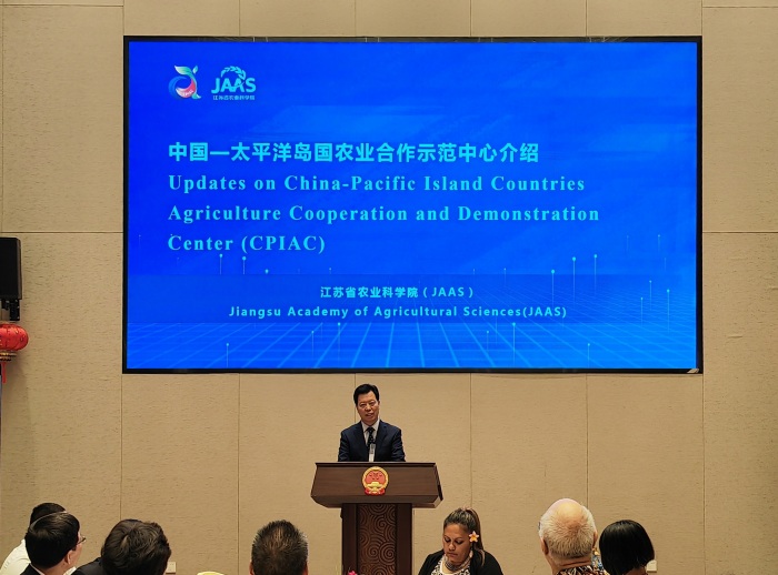 访问萨摩亚期间,在江苏省政协主席张义珍、中国驻萨大使费明星及萨摩亚科学研究组织(SROS)董事会主席苏拉马奈·奥特见证下,王克华代表我院与SROS签署合作谅解备忘录,推动双方在人才培养、资源共享、合作研究等领域的合作。王克华还出席了中国驻萨摩亚大使馆举办的中国江苏省专场推介会,系统介绍中太农业中心成立以来所取得的发展成果和未来计划,全景展现了江苏与太平洋岛国农业合作成果及潜力。
