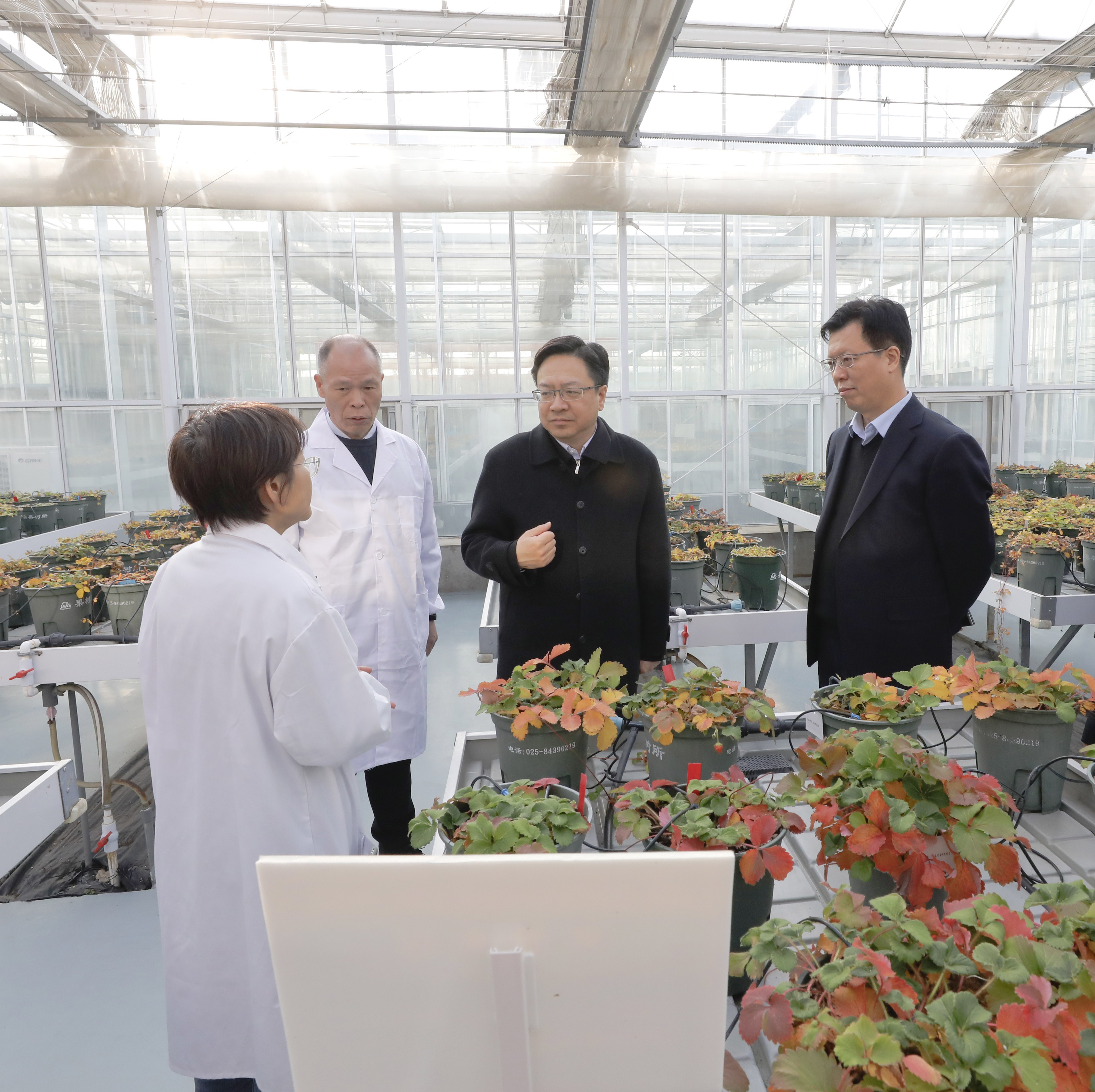 调研期间,陈忠伟一行实地察看了农业信息馆、国家草莓种质资源圃、江苏省种质资源中期库、省部共建江苏省食品质量安全国家重点实验室培育基地。