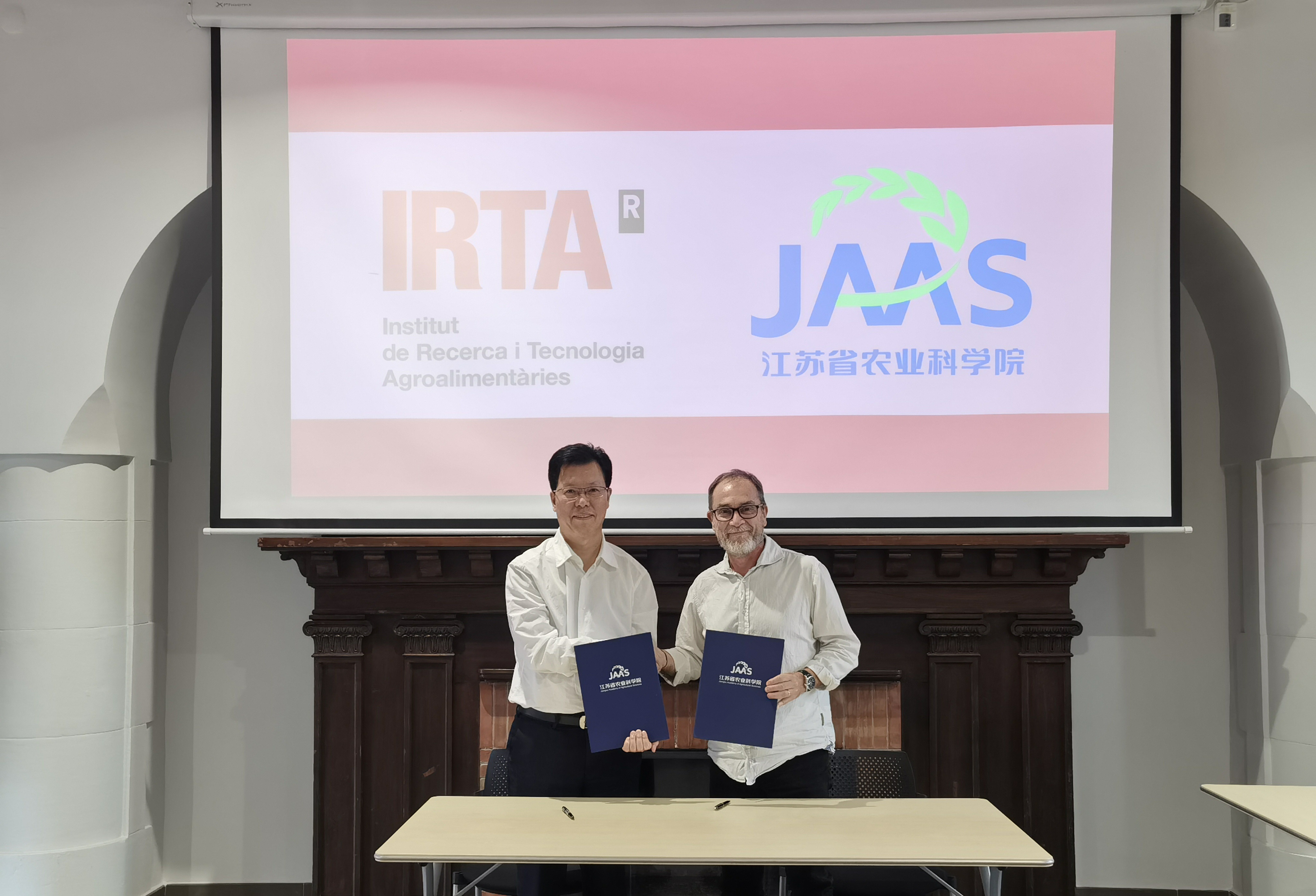 在西班牙农业食品研究技术院,王克华与Jordi Garcia Mas主任围绕双方科研合作方式与合作领域进行了深入交流,就人员互访交流、种质资源互换、重点领域联合攻关、加强技术交流合作等达成一致意见,共同签订《江苏省农业科学院和西班牙农业食品研究技术院合作谅解备忘录》。