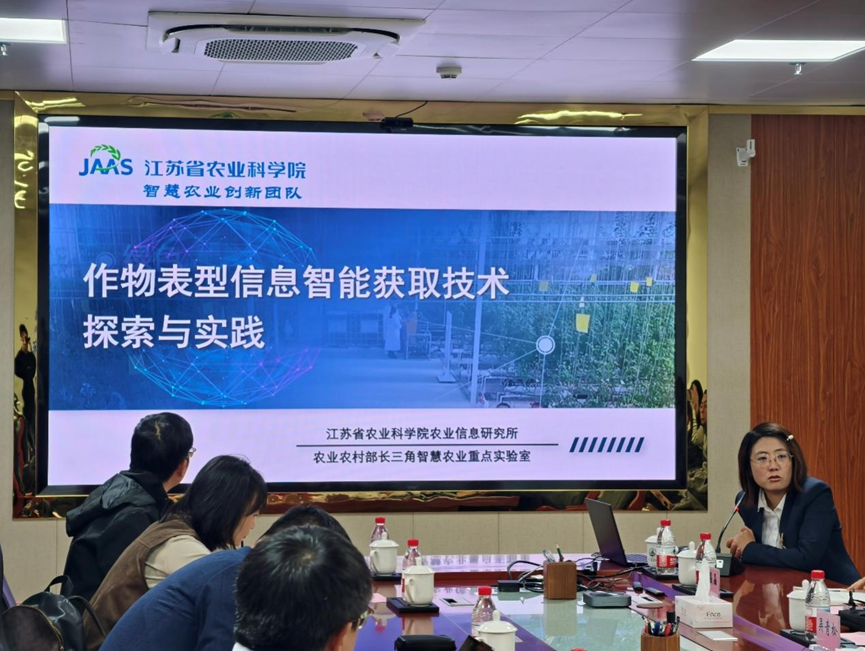 在农机所调研期间,李普旺对任妮一行的到访表示欢迎,李国杰副所长介绍了农机所的单位概况与历史沿革,以及在科研平台、科研团队、科技创新与转化应用、以及国际交流合作等方面的基本情况。任妮介绍了我院智慧农业创新团队在农机数字化、智能化装备及机器人技术、通用底盘研发等方面的研究进展。双方围绕农机装备智能化改造和信息化平台建设等方向进行了深入交流。