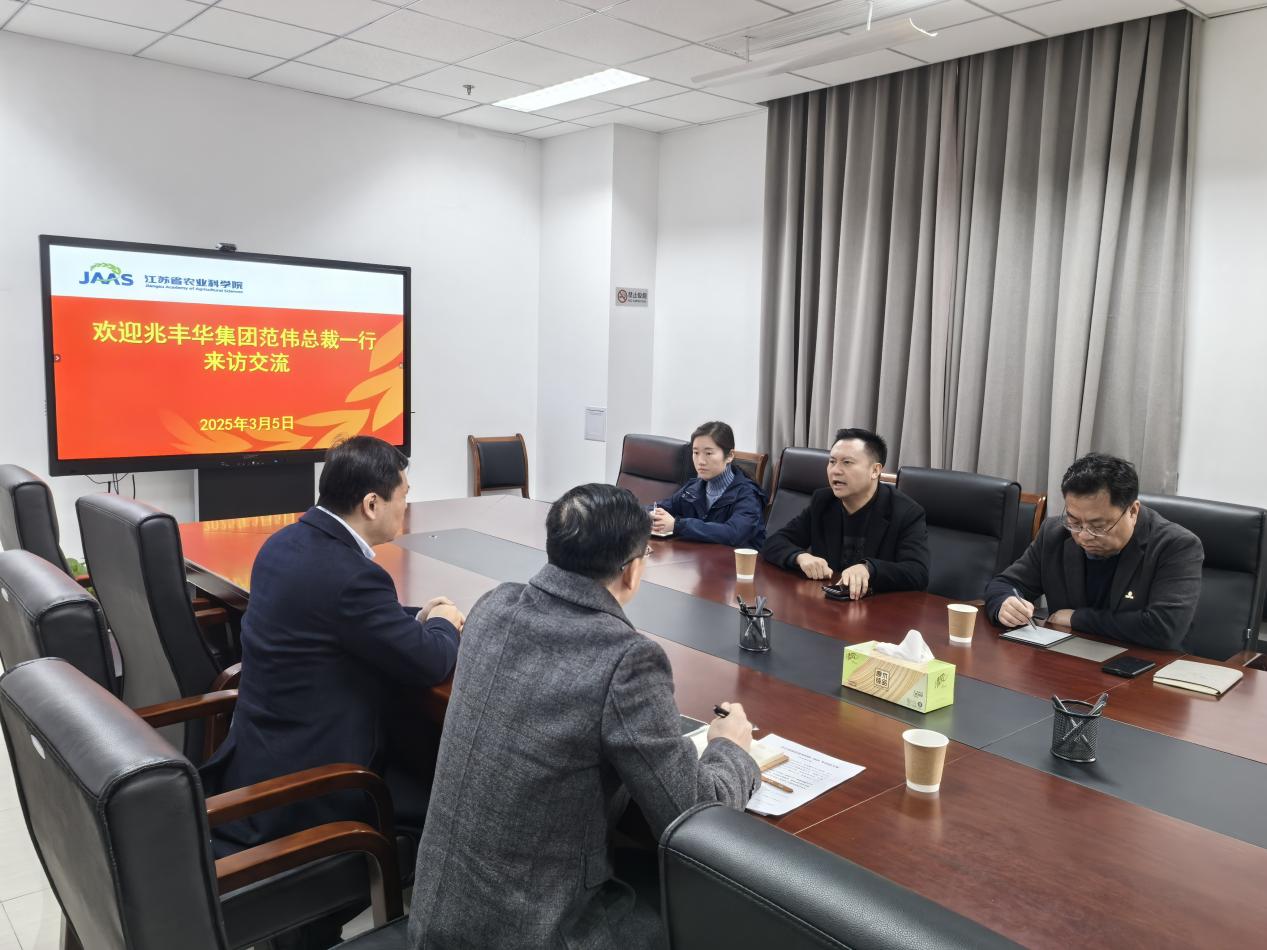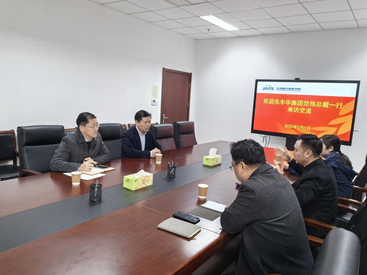 3月5日,兆丰华集团总裁范伟、兆丰华南京公司总经理朱晓玮等3人来我院兽医所调研交流。兽医所党总支书记陈晓强主持接待,副所长、支原体创新团队首席冯志新及综合办主任参加。