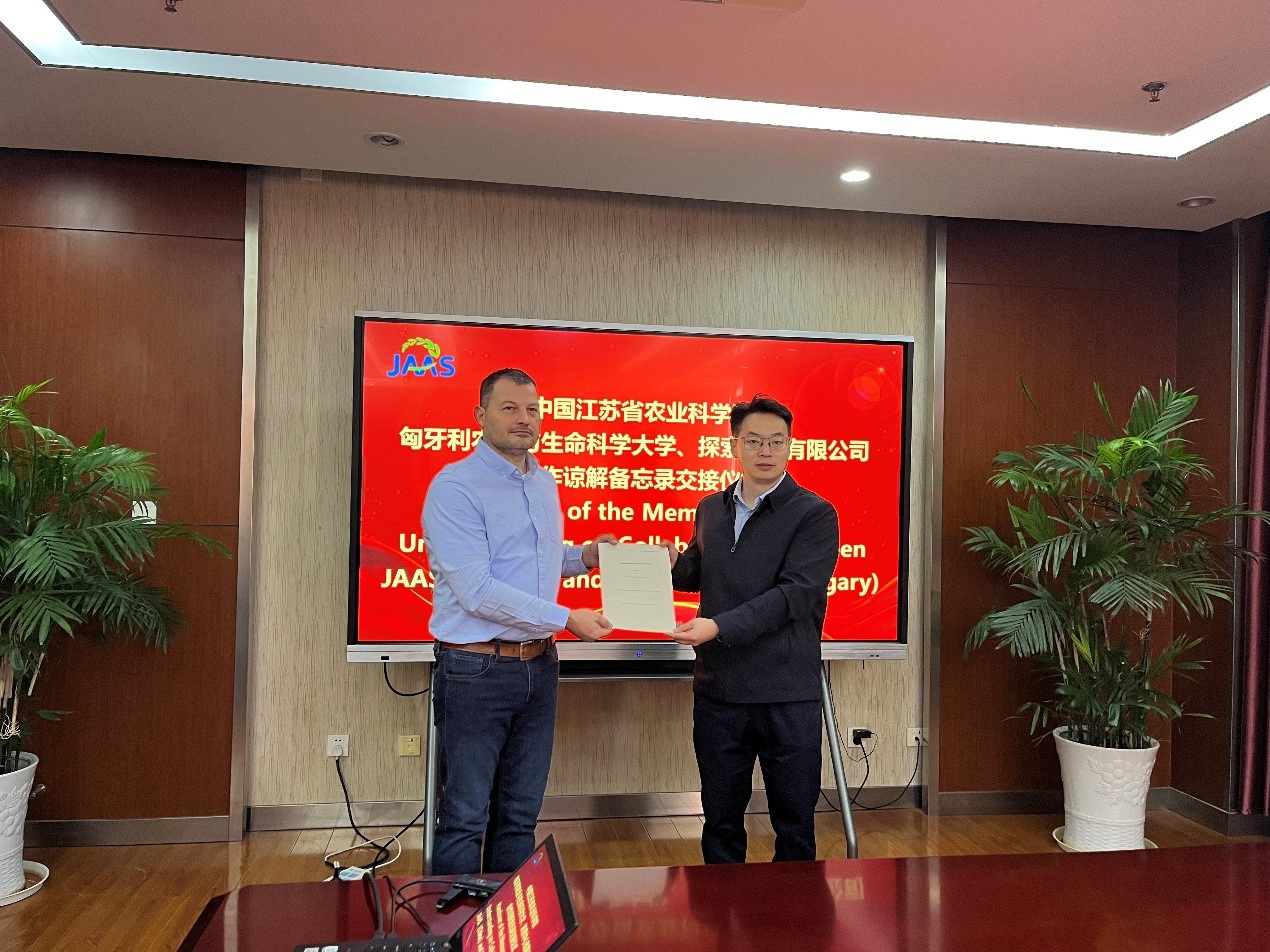 10月22日上午,国际合作处、资环所与匈牙利农业与生命科学大学(MATE)共同举行合作谅解备忘录(MOU)交换仪式暨合作交流研讨会。会议由资环所副所长高岩主持,匈牙利农业与生命科学大学副教授Mátyás Cserháti、江苏省农科院国合处处长邹轶、副处长庄丽娜以及资环所多位科研骨干出席会议。