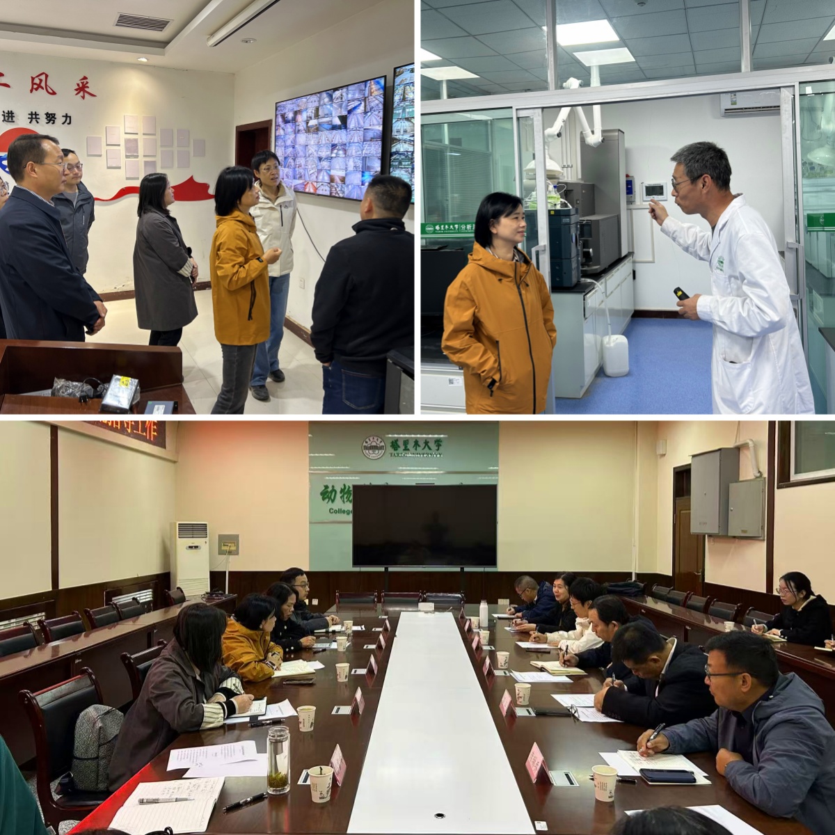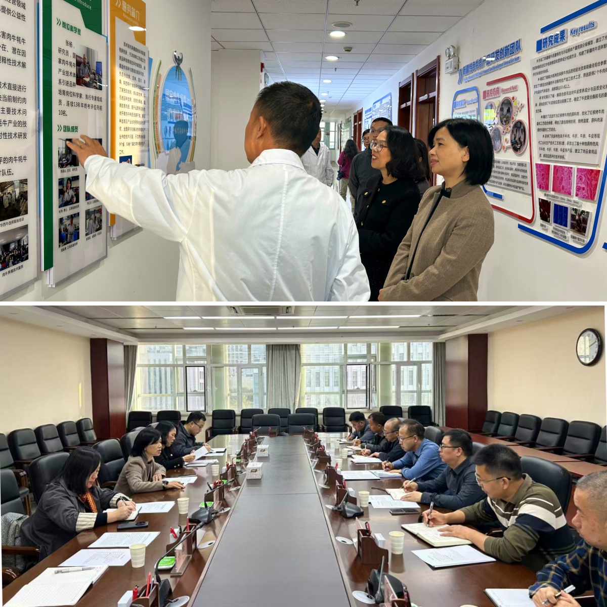 在新疆畜牧科学院,双方举行座谈交流。新疆畜科院党委副书记、院长王金泉主持座谈会,党委委员、副院长高维明与我所党总支书记、所长叶小梅分别介绍了各自单位的基本情况与发展重点。叶小梅表示,希望双方进一步加强合作,共同围绕新疆畜牧产业节本增效目标开展科技创新合作、技术成果转化以及人才培养,探索创新机制建立长期稳定的合作关系。座谈会上,相关团队还就学科建设与科研合作进行了深入探讨。调研期间,叶小梅一行参观了新疆畜科院畜牧研究所的重点实验室。