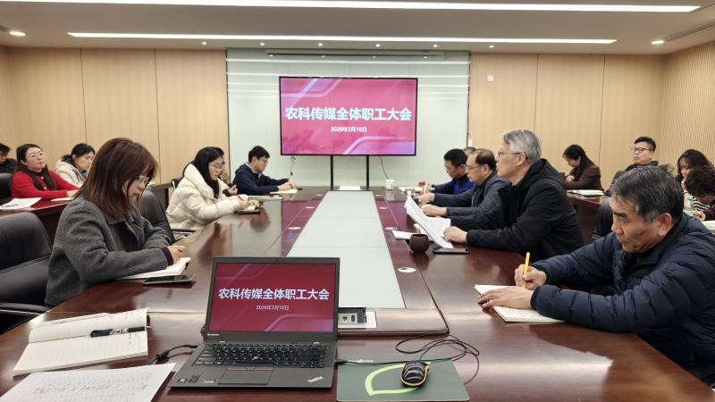 3月10日下午,农科传媒召开全体职工大会,传达学习院2026年工作会议精神,部署公司年度重点工作、安全生产工作,并开展集体廉政谈话。会议由公司执行董事、总经理吴爱民主持,全体职工参加了会议。