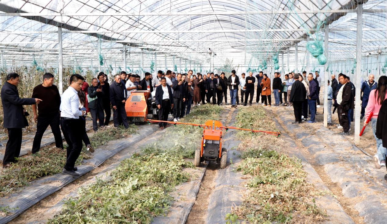 当天下午,与会人员前往淮安市农业科学院科研创新基地,观摩西甜瓜生产的机械化应用现场。技术人员现场演示了土壤深松机、开沟机、蔬菜移栽机、打药机、藤蔓粉碎机等多类型农业机械,充分展现了各个机械的性能特点,首次亮相的可遥控操作打药机、藤蔓粉碎机备受关注。操作现场展现了现代农业机械提升生产效率与作业质量的优势。