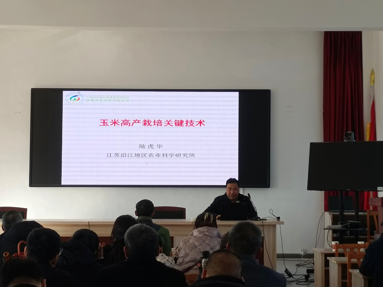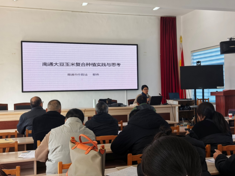 培训会上,项目第二负责人、豆类团队缪亚梅研究员围绕《鲜食蚕豆高效生产技术及种植模式》,系统讲解了产业现状、品种筛选、田间管理、病虫害防治及周年高效种植模式等内容;同时针对启东大豆生产现状,重点从准备良田、选择良种、应用良法及防灾减灾等四个方面深入解析大豆单产提升的关键技术;玉米团队陆虎华研究员围绕玉米绿色轻简化栽培管理、病虫害绿色防控以及防灾减灾等方面对玉米高产栽培关键技术进行了讲解;南通市作栽站站长、郁伟推广研究员与大家分享了3年来大豆玉米带状复合种植的实践与思考,并对提高大豆玉米带状复合种植水平与技术要点进行了传授。