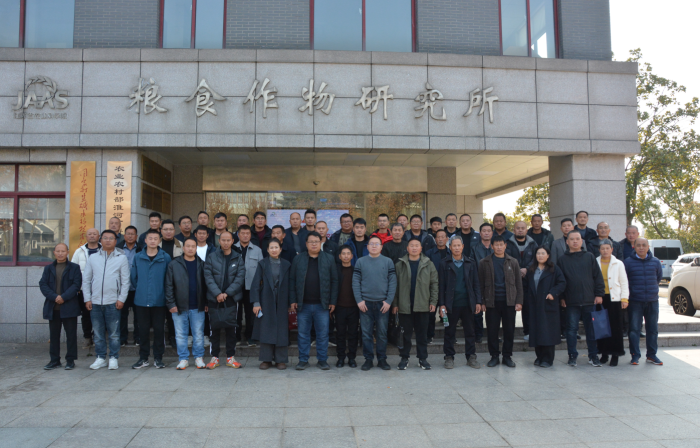 为更好的推进我院甘薯新品种及新技术等科技成果转化,助力甘薯产业高质量发展,12月10日,粮作所举办“苏薯28”授权与种植技术交流会。院成果转化处处长顾军出席活动,粮作所副所长边小峰主持会议。来自江苏、安徽、山东等主要产区的甘薯种苗、种植企业50多名代表参加了此次交流会。