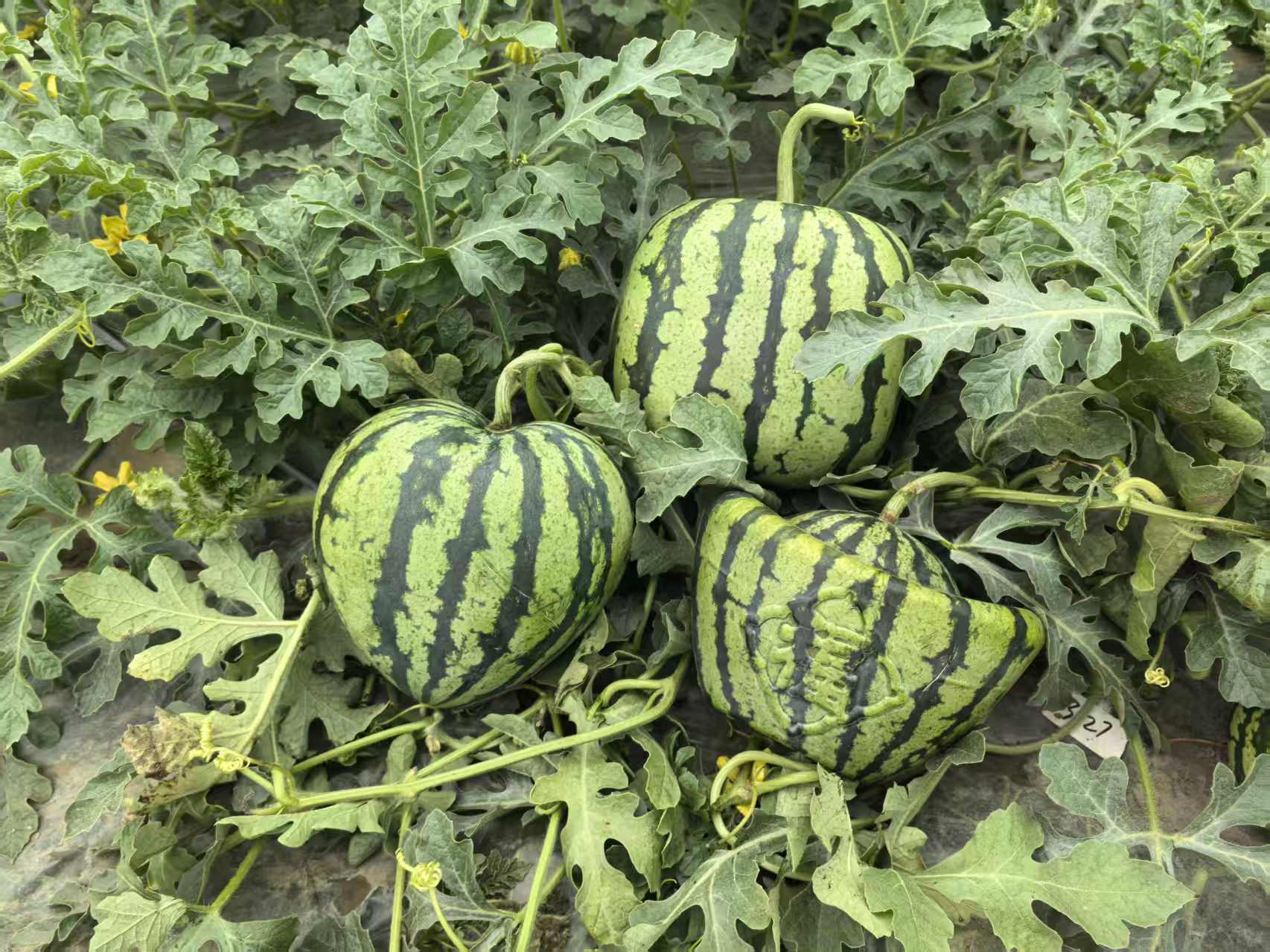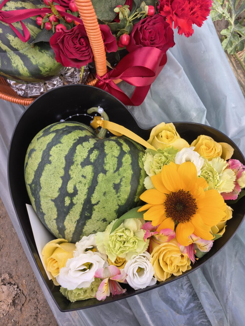 西瓜异形瓜培育是本次技术服务的又一亮点,团队指导瓜农在西瓜坐果后约20天,将幼果套入特制的透明有机模具中,通过特定的栽培技术管理,让西瓜按照模具形状自然生长,使其长成正方形、心形、元宝形等造型。异形瓜不仅具有食用价值,更有极高的观赏价值和礼品属性,能够有效提升产品的附加值。