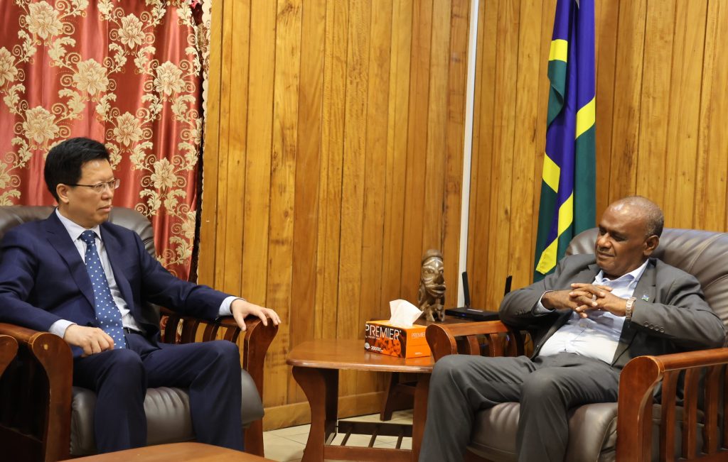 11月6日上午,所罗门群岛总理杰里迈亚·马内莱在位于首都霍尼亚拉的总理府会见我院代表团一行,并与院党委书记王克华举行亲切会谈。