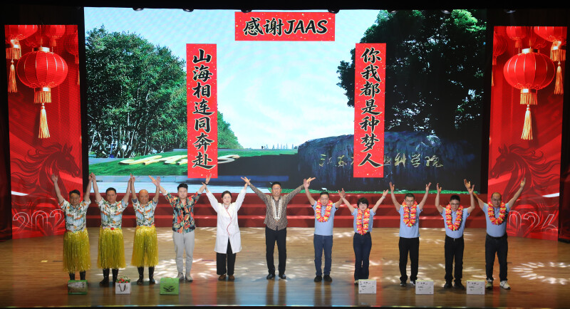 党委书记王克华发表热情洋溢的新春致辞。院长朱艳宣读2025年“院十件大事”。王克华代表院党政领导班子向全院广大干部职工、离退休老同志、特聘研究人员以及在我院工作学习的海外学者、博士后和研究生致以诚挚的问候和美好的祝福。他表示,回望2025年,我院坚决扛牢江苏农业科研“集团军”职责使命,牢固树立“经营创新”理念,全力推进有价值、有组织的科研,在建设高水平国际化现代科研院所的征程上迈出了铿锵有力的坚实步伐。他向为院事业高质量发展奠基献策的各位老领导、老同志,向奋战在科研攻关、管理服务一线的全体干部职工表示衷心感谢。他希望新的一年,大家要拿出一马争先的锐气、跃马扬鞭的激情、万马奔腾的活力,保持马不停蹄的干劲,坚决锚定“十五五”“12356”的总体思路,接续奋斗培育高水平学科、高层次人才、高能级平台和高质量成果,在新发展格局中塑造新优势、展现新作为、实现新跨越,为建院百年兴业奠基、为江苏农业贡献力量、为乡村振兴赋能增效。