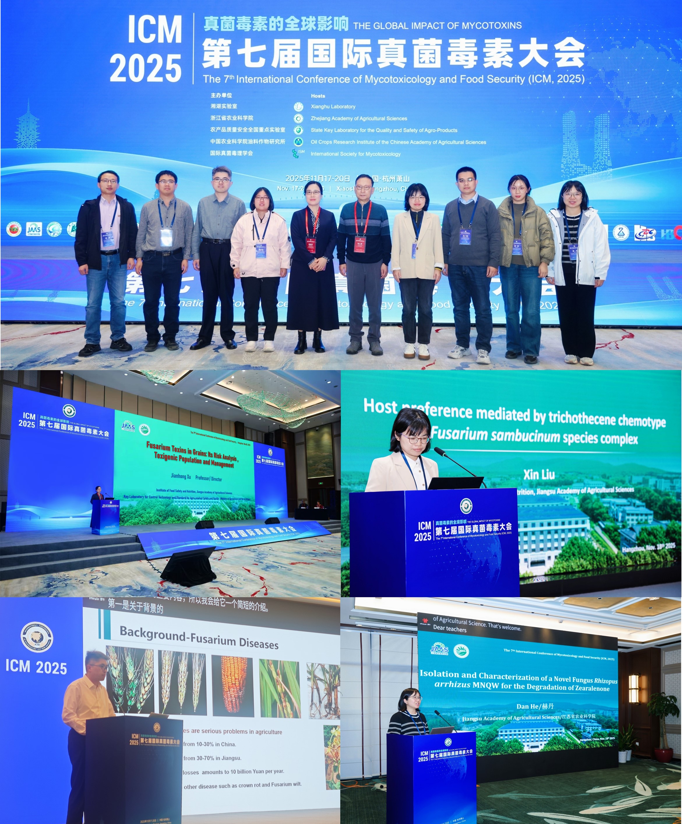 11月17日至20日,我院参与承办的第七届国际真菌毒素大会在浙江杭州顺利举行,共有来自联合国粮农组织(FAO)、国际真菌毒理学会等国际组织和全球15个国家的650余名代表参会。院党委委员、副院长王冉研究员应邀出席大会,质量安全所副所长、粮油安全与营养创新团队首席徐剑宏研究员带领团队参会。