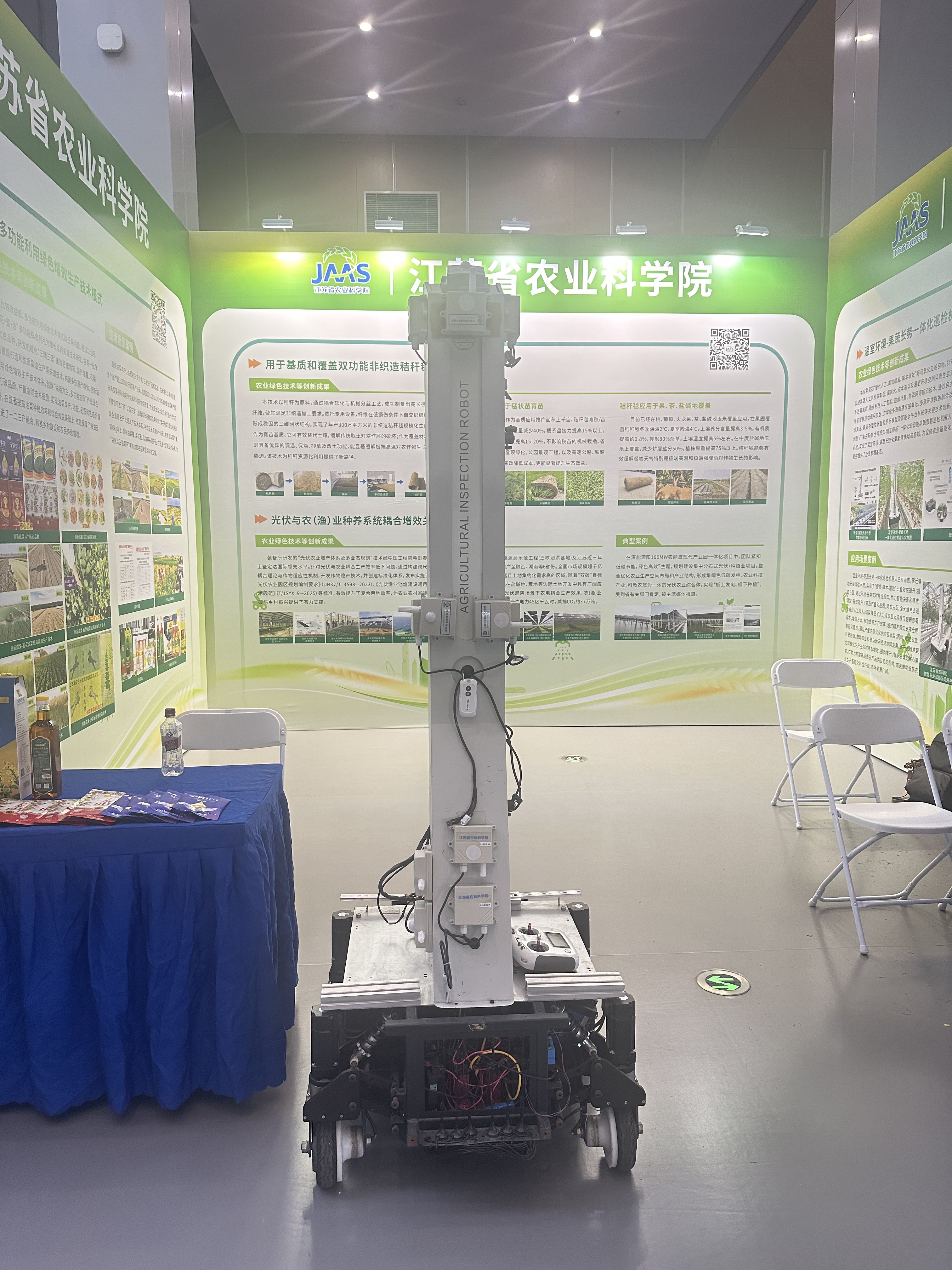 大会同期还举行了2025农业绿色科技展。信息所自主研发的“温室环境—果蔬长势一体化巡检机器人”随同院系列成果参展。