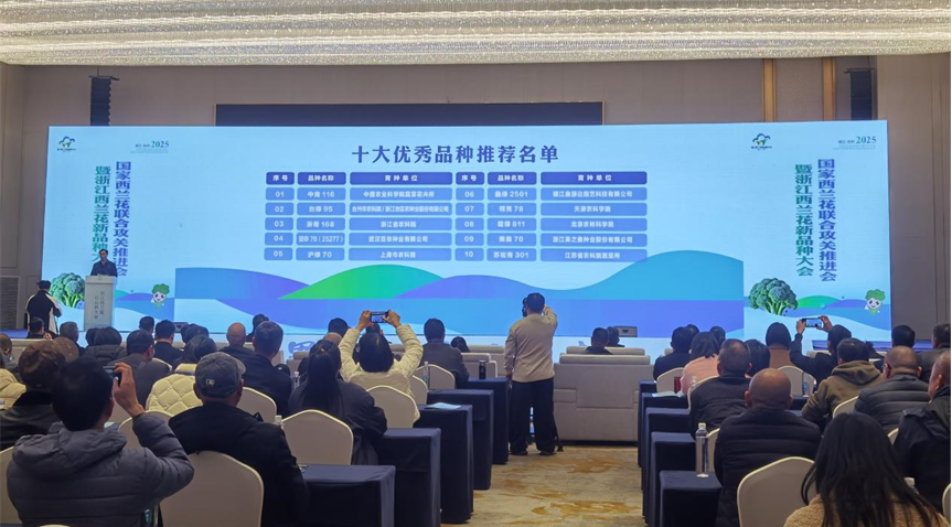 12月23日至25日,国家西兰花育种联合攻关工作推进会暨2025浙江西兰花新品种大会在浙江台州顺利召开。大会以“浙里花开 芯向未来”为主题,系统总结了“十四五”期间全国西兰花育种联合攻关取得的阶段性成果,并对“十五五”期间我国西兰花种业高质量发展进行了规划部署。浙江省农业农村厅、台州市政府相关领导,以及来自国家联合西兰花育种联合攻关成员单位、全国推广与经营领域的代表等150余人参会。我院蔬菜所甘蓝种质创新团队作为成员单位参加并汇报了本年度工作。