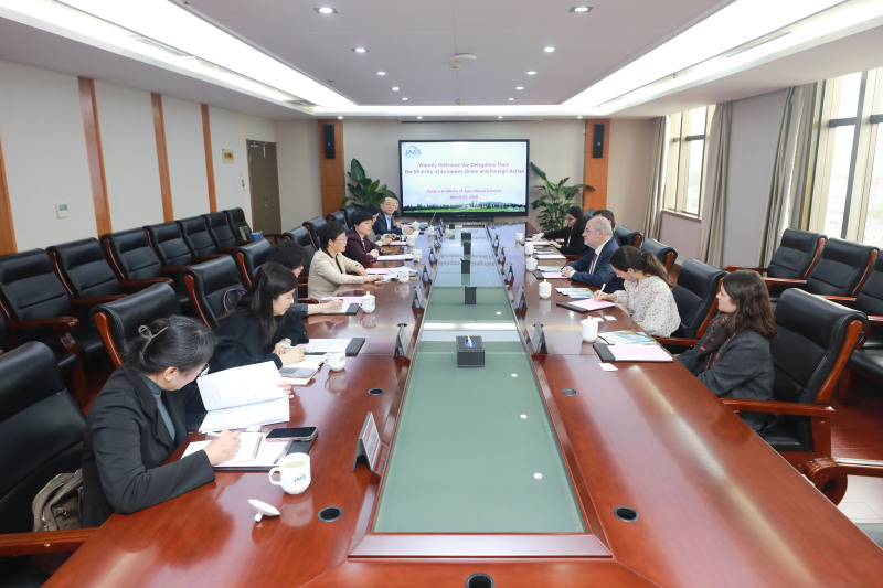 朱艳对杜奇部长一行到访表示热烈欢迎,并详细介绍了我院发展历程、学科布局、科技创新、产业贡献及国际合作等情况。她表示,我院与加泰罗尼亚自治区合作渊源深厚,已同当地食品与农业技术研究院(IRTA)建立长期稳定的合作关系。她强调,此次杜奇部长一行访问是双方合作迈入新阶段的重要契机,希望以此次来访为纽带,进一步拓展在智慧农业、绿色农业技术、农产品加工等领域的务实合作,加强青年科研人员双向交流,共建知识共享与协同创新平台,推动更多合作成果落地见效,更好造福两地民众、服务农业现代化建设。