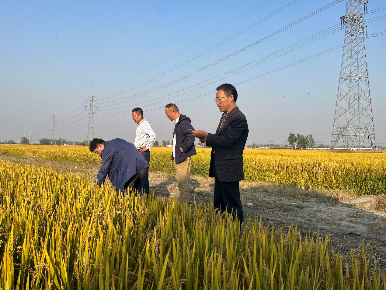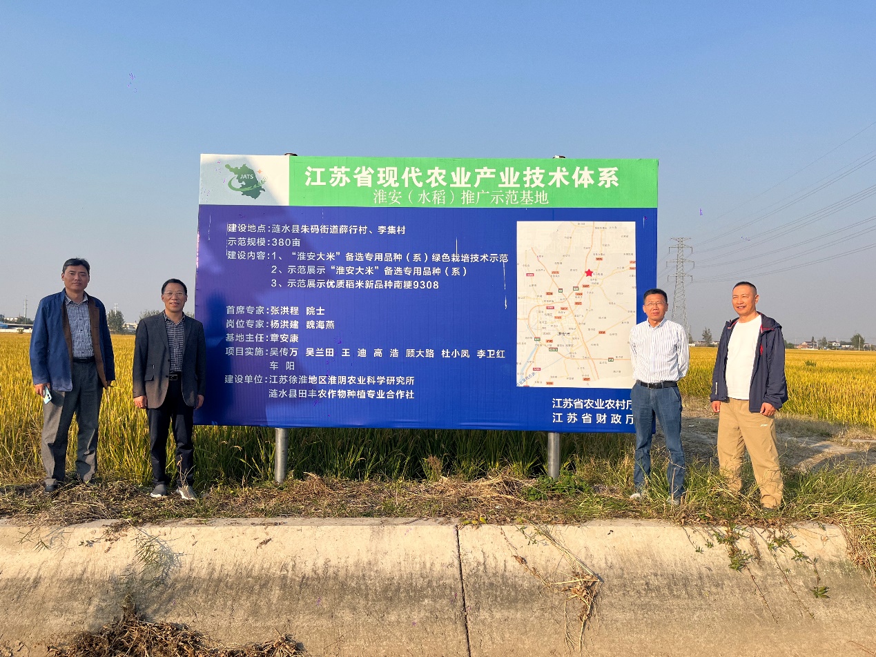 10月23日,淮安市农业农村局副局长王兴龙推广研究员、种植业管理处处长贾军,所党委副书记、基地主任章安康研究员和我所科技人员赴江苏水稻产业技术体系淮安推广示范基地涟水县朱码街道薛行村示范点,实地调研指导"淮安大米"备选专用品种(系)生态适应性试验与示范种植情况。