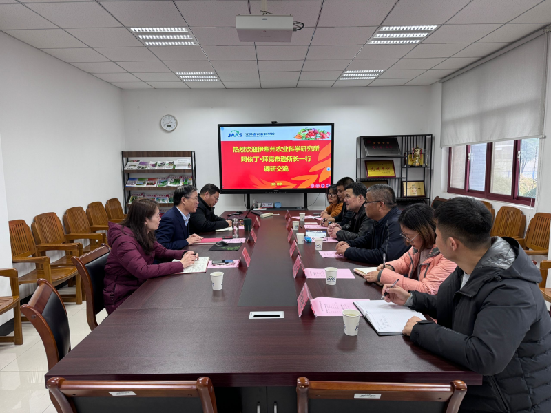 12月14日,伊犁哈萨克自治州农业科学研究所所长阿依丁·拜克布逊一行来我院蔬菜研究所调研交流并看望慰问新疆挂职干部张胜军。蔬菜研究所所长、书记赵统敏主持接待,副所长、副书记万云龙等参加接待。