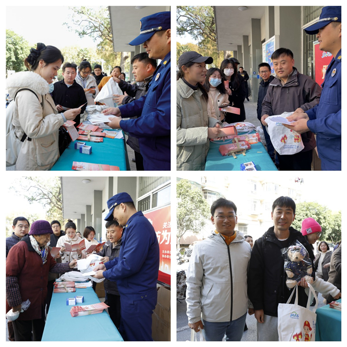 培训会前,后勤保卫处联合玄武区消防救援大队在职工食堂门口开展了消防安全宣贯活动,通过发放消防宣传资料、消防知识有奖竞答等形式,进一步激发我院职工和学生关注消防安全、学习消防知识、参与消防工作的积极性,让“预防为主、生命至上”主题活动深入人心,为提升我院防御火灾能力创造了良好消防安全环境。