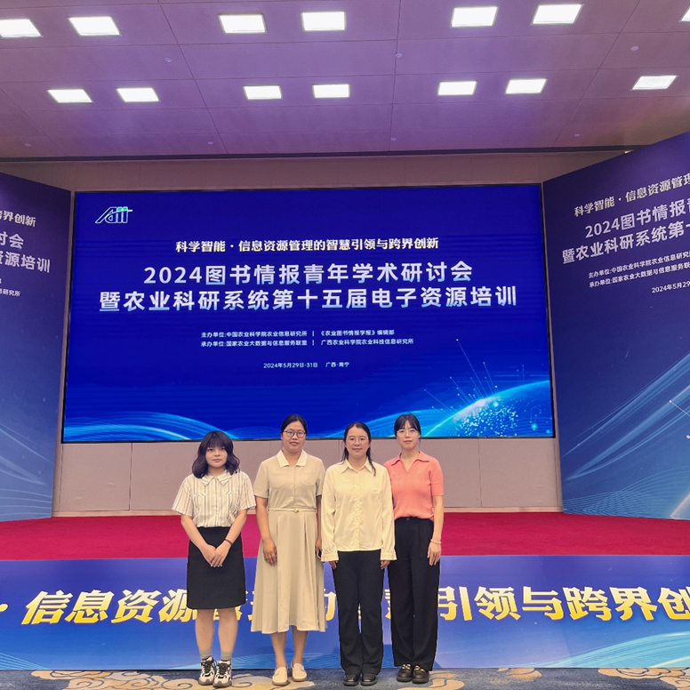 2024年5月30日,由中国农业科学院农业信息研究所《农业图书情报学报》编辑部主办,国家农业大数据与信息服务联盟等机构协办的“2024图书情报青年学术研讨会暨农业科研系统第十五届电子资源培训”在广西南宁顺利召开。来自全国农业、农垦、畜牧、水产、图情等科研院所及高校的200余名领导、专家、科技人员参加会议。图书馆馆长戴红君一行参加此次会议。