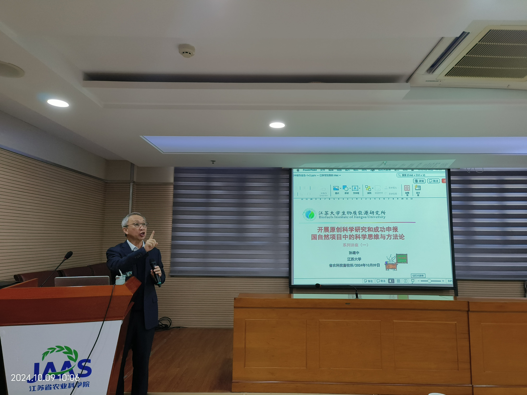 10月9日,畜牧所特聘顾问孙建中教授在畜牧所216会议室首次开讲,作题为《开展原创科学研究和成功申报国家自然项目中的科学思维与方法论》的报告。畜牧所科研人员和研究生等60余人参加,报告会由畜牧所所长叶小梅主持,