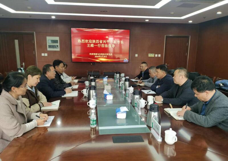 3月28日下午,陕西省兴平市副市长王维一行来资源所就特色种质资源开发利用进行考察交流,副所长王宁主持接待,资源所党总支书记徐红兵参加会议,并向来宾介绍了我所的科研、成果、平台等基本情况。