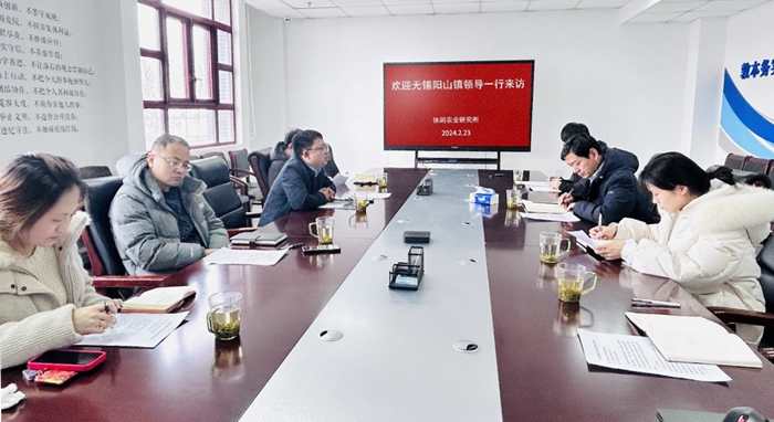 2月23日,无锡市惠山区阳山镇副镇长单鸿斌等一行5人来休闲所洽谈花卉合作事宜。休闲所所长、花卉创新团队首席邓衍明研究员主持接待,花卉团队相关科技人员参加交流。