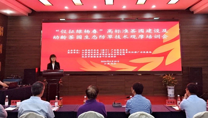 5月29日,由江苏现代农业(茶叶)产业技术体系主办,休闲农业研究所承办的“仪征绿杨春茶”高标准茶园建设及幼龄茶园生态防草技术观摩培训会在仪征举行。江苏省农村专业技术协会理事长、江苏省农业科学院原党委书记常有宏研究员,江苏省茶叶学会理事长、江苏省茶叶产业技术体系首席王润贤教授,仪征市乡村振兴局副局长周明军出席会议并讲话,省内外行业专家、茶叶产业技术体系和当地茶企代表等50余人参加会议,培训会由休闲所副所长、仪征推广示范基地主任杨亦扬主持。