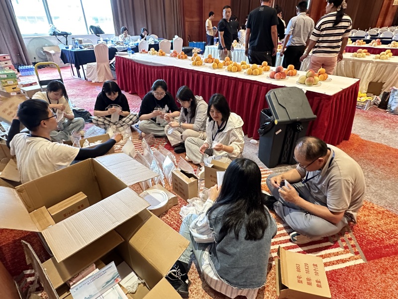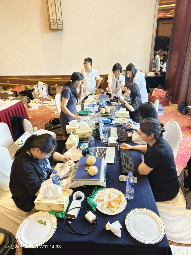 桃创新团队全体成员积极参加活动,开启了一场团队成长与产业发展的“双向奔赴”,大家目标明确、组织有序,在物资准备、收样编号、样品初测、出样展示、切桃品鉴、评分录入、媒体对接、会标设计等环节中齐心协力,在干事担当中展示团结奋进与青春活力,充分体现了“传承、和谐、奋进、创新”的团队文化。通过活动,团队成员在诸多样品的展示与品鉴过程中,加深了对桃品种选育目标和自主选育品种应用效果的认识,增进了对江苏桃品种结构和优质栽培技术应用的了解,强化了科技助力种业振兴的自信。