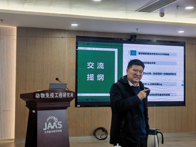2026年1月14日,免疫所特邀扬州大学兽医学院朱国强教授作专题报告,围绕国家基金申报新规、评审机制、标书撰写技巧及科研创新拓展等主题展开深入分享,会议由免疫所副所长卢宇主持,兽医学科科研人员50余人参会。