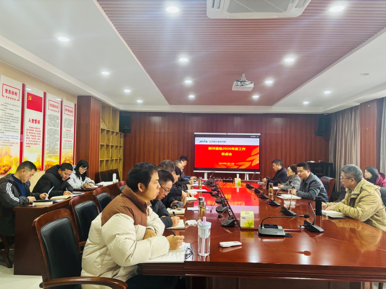 为精准锚定2026年发展方向,系统擘画年度工作蓝图,切实扛起“十五五”规划开局起步的使命担当,1月14日,新洋基地召开2026年工作务虚会。会议由党支部书记吴长付主持,基地领导班子及中层干部齐聚一堂,紧扣农业科研主责主业共商发展大计、凝聚奋进共识。