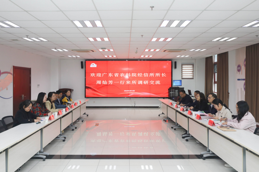 4月12-13日,广东省农业科学院农业经济与信息研究所所长周灿芳、副所长方伟等一行来我院信息所、农经所调研交流。信息所所长、党总支书记、智慧农业创新团队首席任妮,农经所所长季国军分别主持接待。相关同志参与接待。