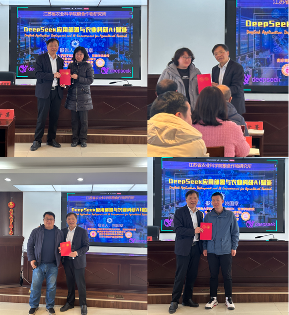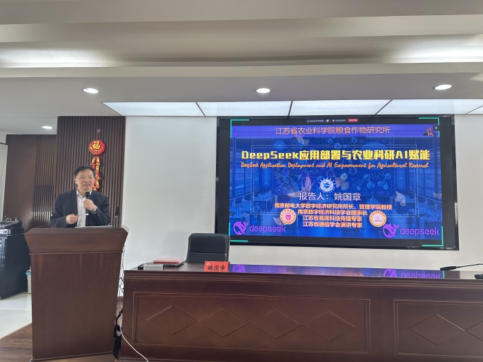 为积极响应数字化时代发展需求,进一步提升科技人员对AI认知能力和DeepSeek应用技巧,科技赋能助推农业科研高质量发展。3月10日,粮作所邀请南京邮电大学数字经济研究所所长、管理学院教授姚国章作题为《DeepSeek应用部署与农业科研AI赋能》的专题讲座。会议由粮作所所长、党总支书记杨杰主持,粮作所全体职工、相关专业所科研人员、研究生百余人参加了此次讲座。