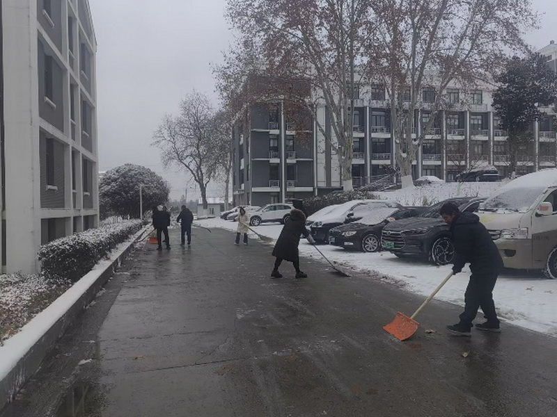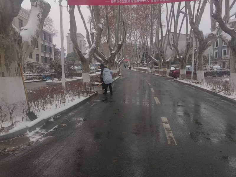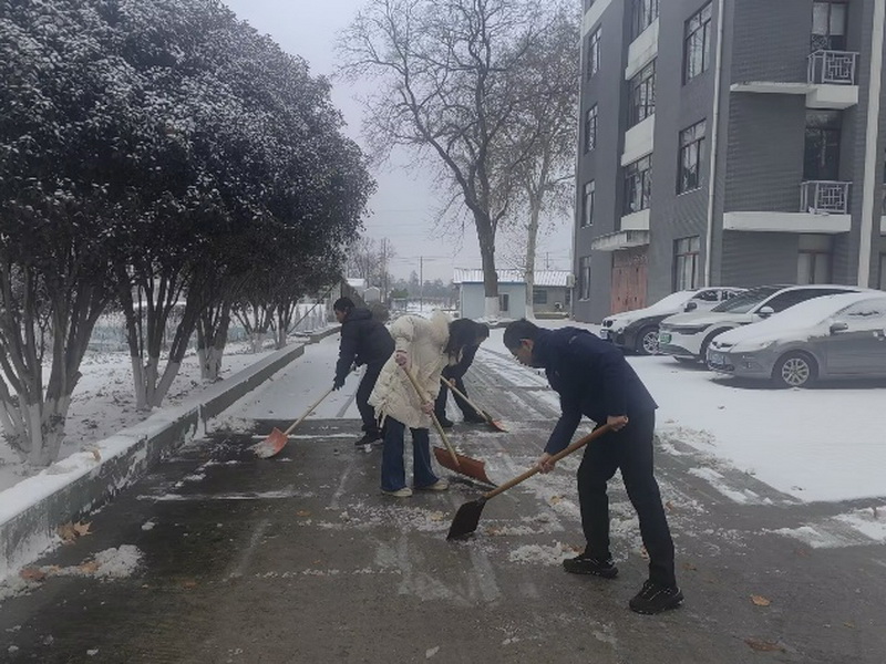 清雪现场,大家分工协作、干劲十足。有的挥舞铁锹铲破冰层,有的紧握扫帚清扫积雪,有的合力将雪堆推至路边,尽管寒风刺骨、双手冻得通红,额前的头发却因忙碌冒起热气,天寒人暖。大家齐心协力、默契配合,不放过一处积雪、不留下一处冰面,经过近一个小时的奋战,经作所办公楼周边及主干道的积雪被彻底清理干净,原本湿滑的道路恢复整洁畅通,为行人出行筑牢了安全防线。