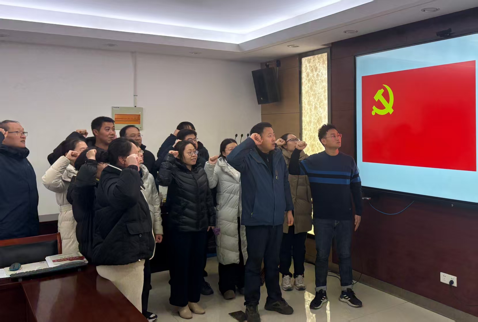 会议期间,还传达学习了部分重要文件精神,观看了党史学习教育《无声的功勋》视频。 第一党支部组织了预备党员入党宣誓仪式暨党员重温入党誓词活动。