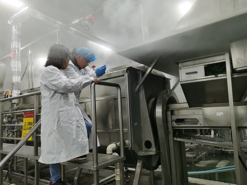 果蔬加工团队同志与企业负责人和技术人员进行深入讨论,对产品全生产过程进行了抽样检验,在此基础提出了规范前处理流程,强化漂烫、预冷、包装关键控制点技术工艺应用等措施。团队与企业负责人达成共识,表示将保持长期合作,为企业打开国际市场保驾护航。
