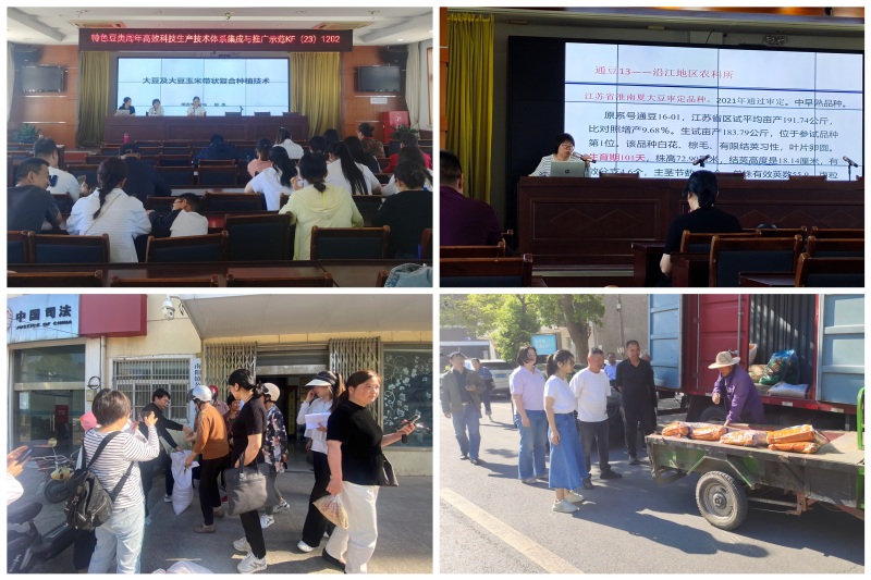 会上,郁伟作了大豆-玉米带状复合种植生产管理技术的专题报告,针对当前生产出现的问题,对大豆的播种期、大豆、玉米种植的模式、肥水管理及病虫草害的防治做了详细的介绍,现场就农户关心的技术难题和生产问题进行了答疑解惑。亚夫科技服务特色豆类项目负责人顾春燕副研究员做了“大豆新品种介绍及通豆13高产栽培管理技术”的培训。培训会现场发放了通豆6号种子及种植技术明白纸60余份。